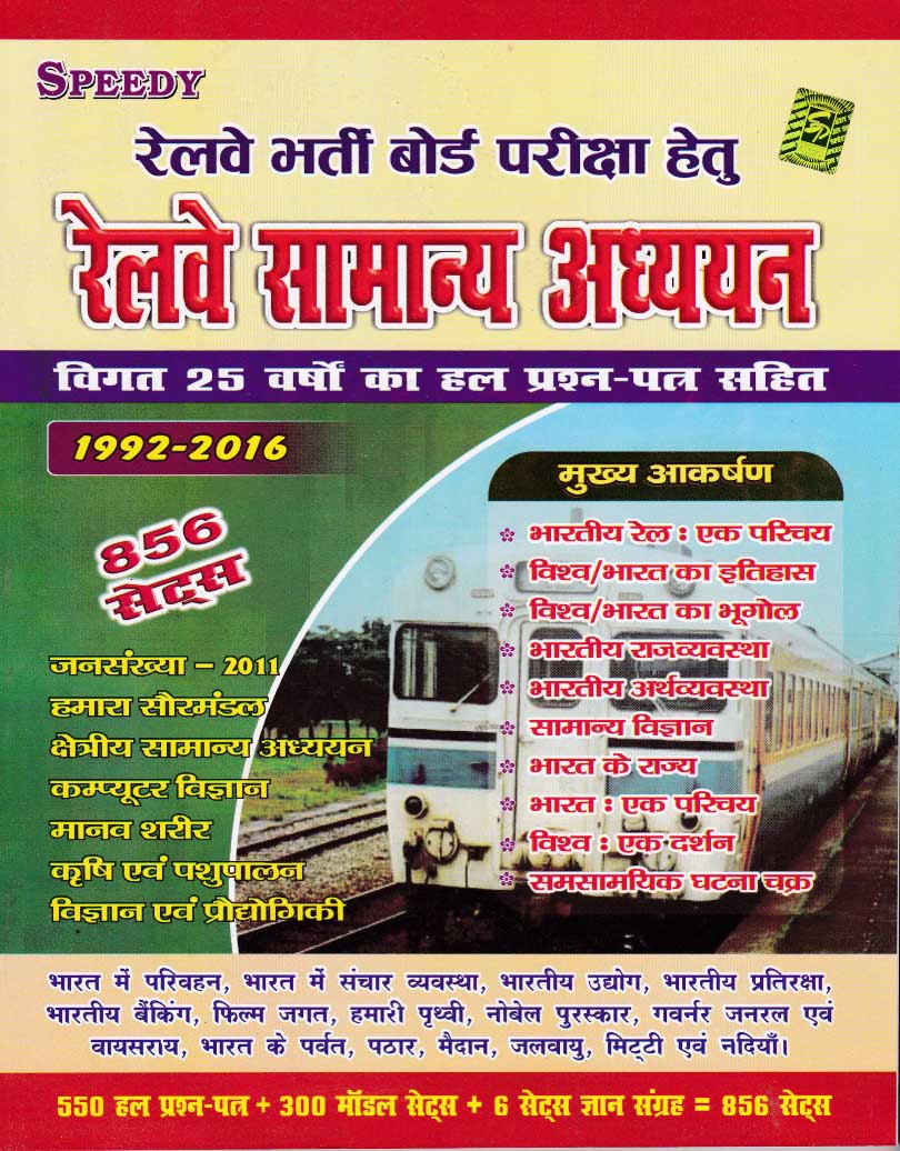 Last 25 year solved Paper of Railway General Study by Speedy Publication. All Railway GS from 1992 to 2016 updated. Total 856 Sets of Actual Questions by RRB. 550 Solved Sets, 300 Model Sets, and 6 sets of Knowledge bank that is total 856 sets.
